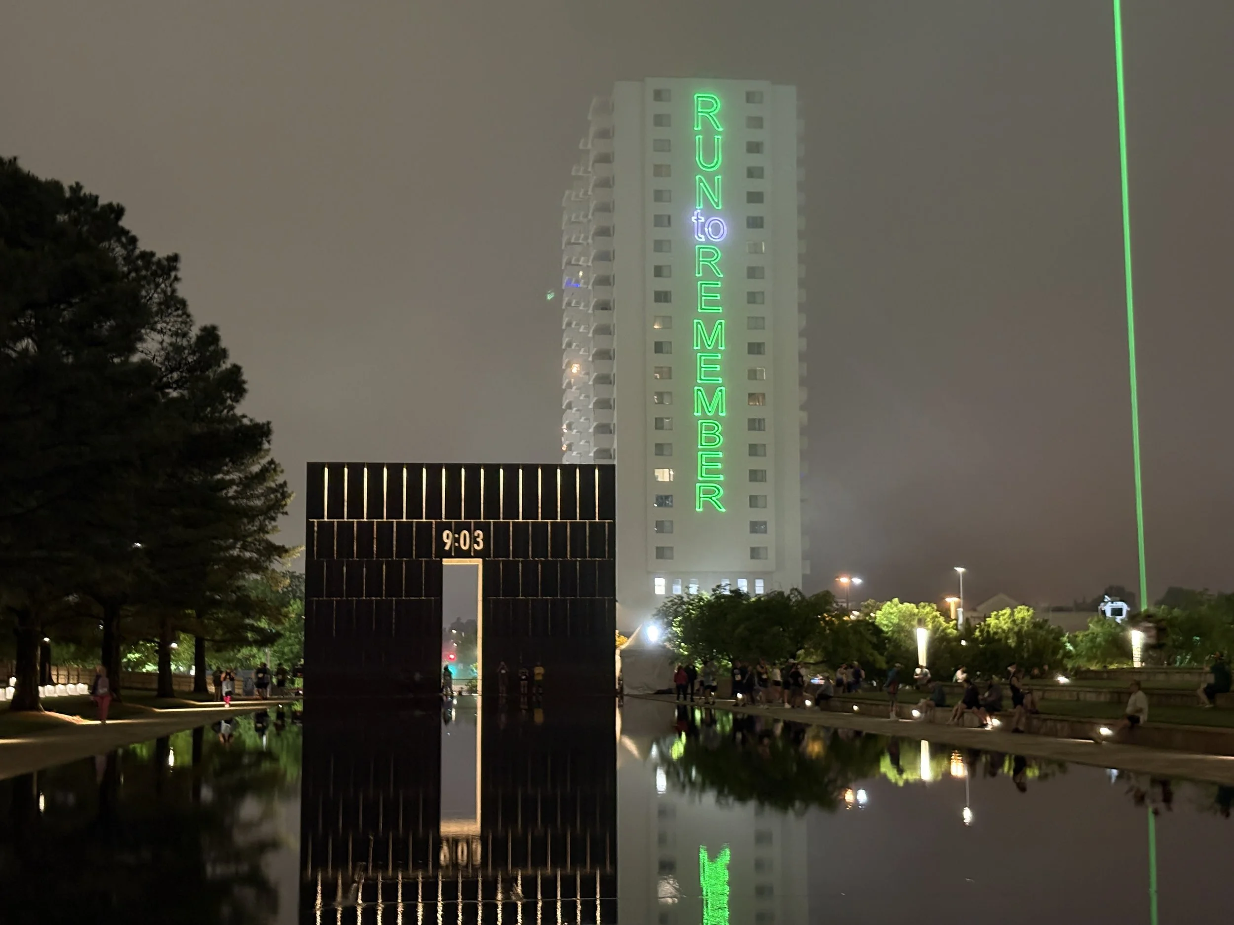 I am thankful that one Sunday morning several weeks before the race, I looked at the website for the memorial race. I noted the request for stories, and I answered their questions. I shared that I ran the inaugural in memory of Kenny and that family members were running with me this year and that I felt grateful at my age to be able to run the race. Within 10 minutes of posting these answers, I got a call from Kari Watkins, President & CEO of the OKC National Memorial & Museum, and then a call from Kylie Frakes, News 9 Executive Producer of Special Projects & Sports, “Would I be okay with the news team coming to Topeka to interview me?” After a minute of considering the possibility—I couldn’t believe it—I said “yes.” We set a date.