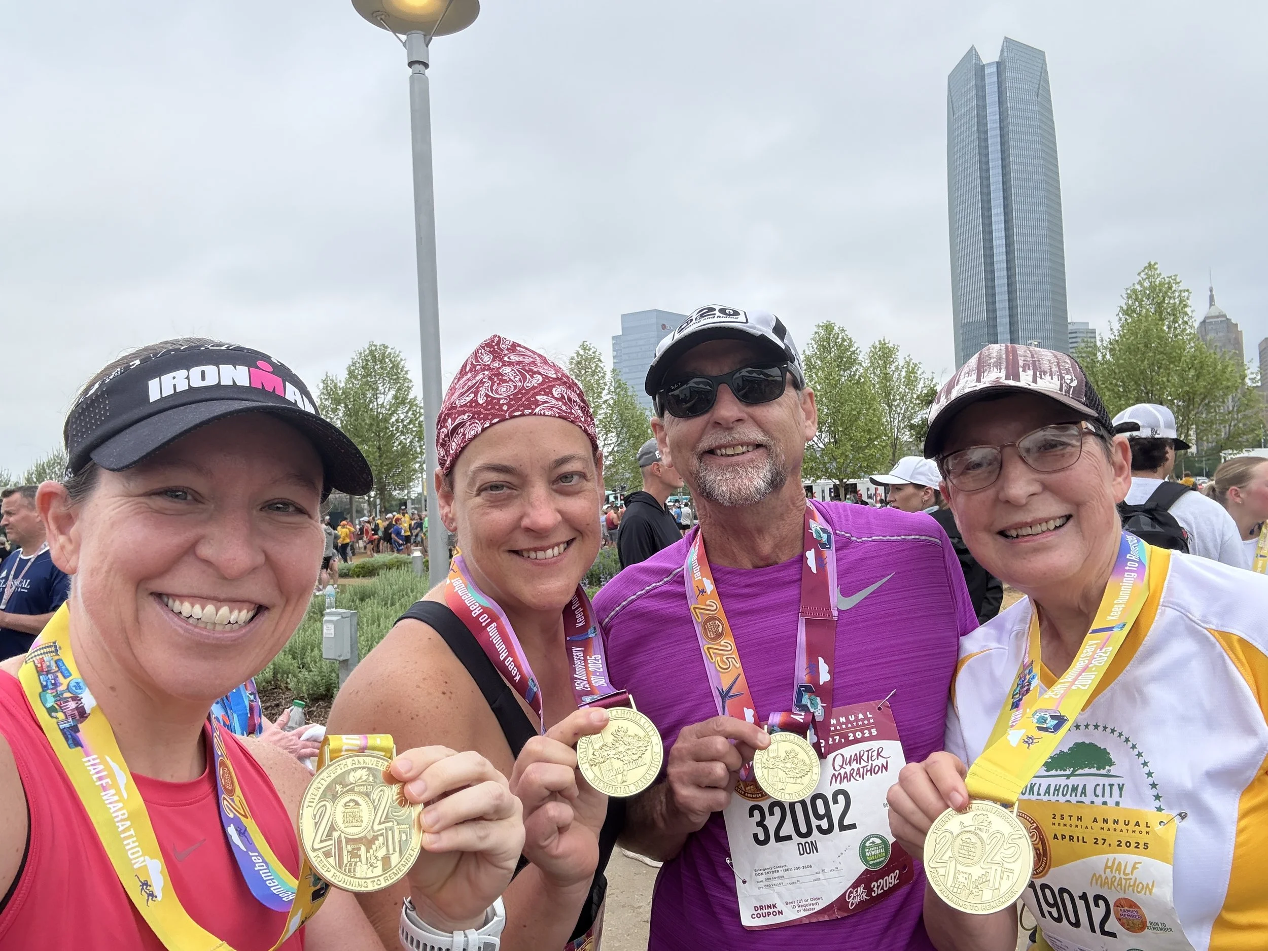 The race ended in Scissortail Park, and I found Laura and Don and Kristy waiting for me—and Laura saw to it that we got this finish line picture! She is the reason I have all these wonderful pictures.