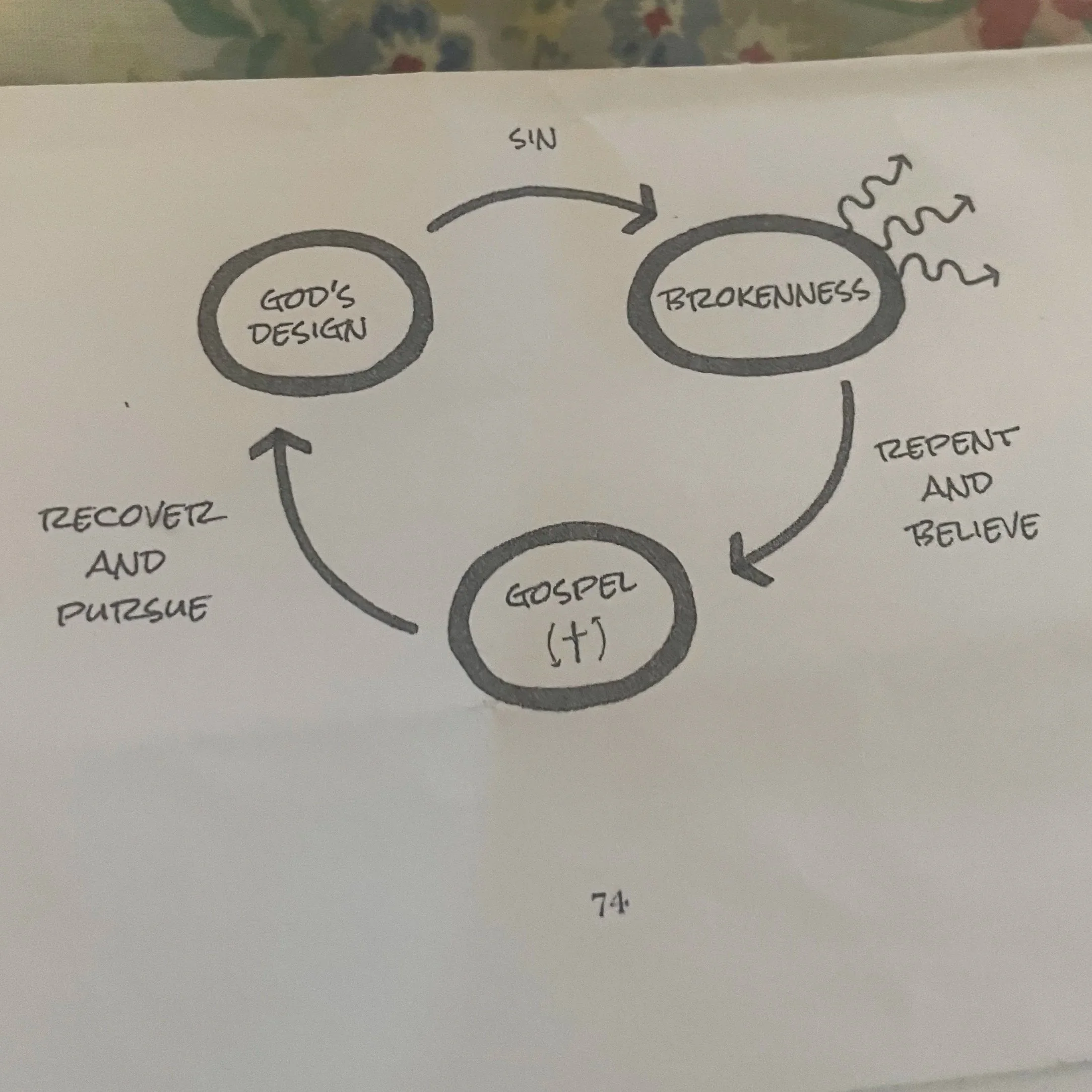 The first circle is God’s Original Design in the Garden of Eden—then sin entered—then brokenness in the second circle. Though we are trying every way possible to find that life we want to lead, we can’t. Enter Christ as a man in the third circle—as a sacrifice for our sins. When we receive Him, we are on the road (race) with His power! He has a purpose—fellowship with the Almighty—and transformation. He is on this race with us and is changing us as we move closer to His “original design.” He didn’t leave us to figure things out on our own. Our race ends with a great finish line—our life in heaven with God and transformation for real!